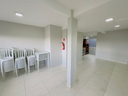 Esse apartamento conta com 02 dormitórios, banheiro social, cozinha, sala de estar e de jantar, área de serviço e garagem coberta.