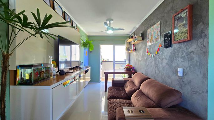 Este imóvel conta com 02 dormitórios, sala de estar de jantar, cozinha, área de serviço, banheiro social sacada com churrasqueira, 01 vaga de garagem.