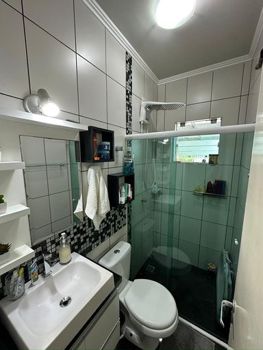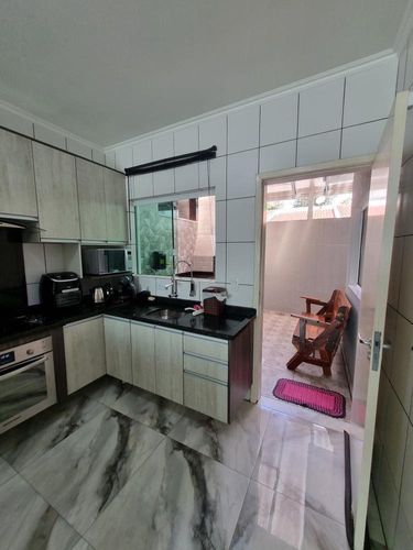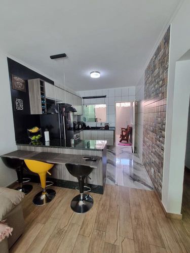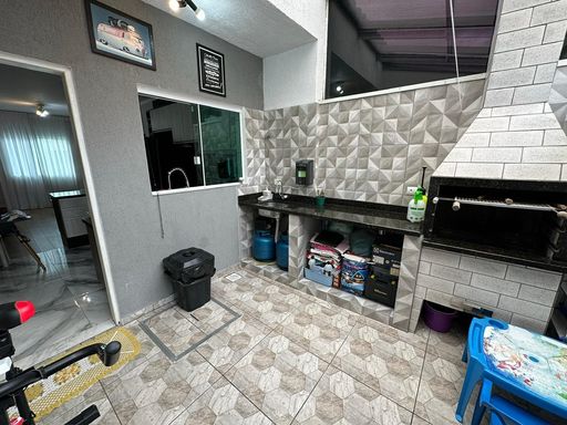 Essa casa conta com 03 quartos, banheiro social, cozinha em conceito aberto, com sala de jantar e de estar, espaço gourmet com churrasqueira, lavanderia coberta, além de 02 vagas de garagem.